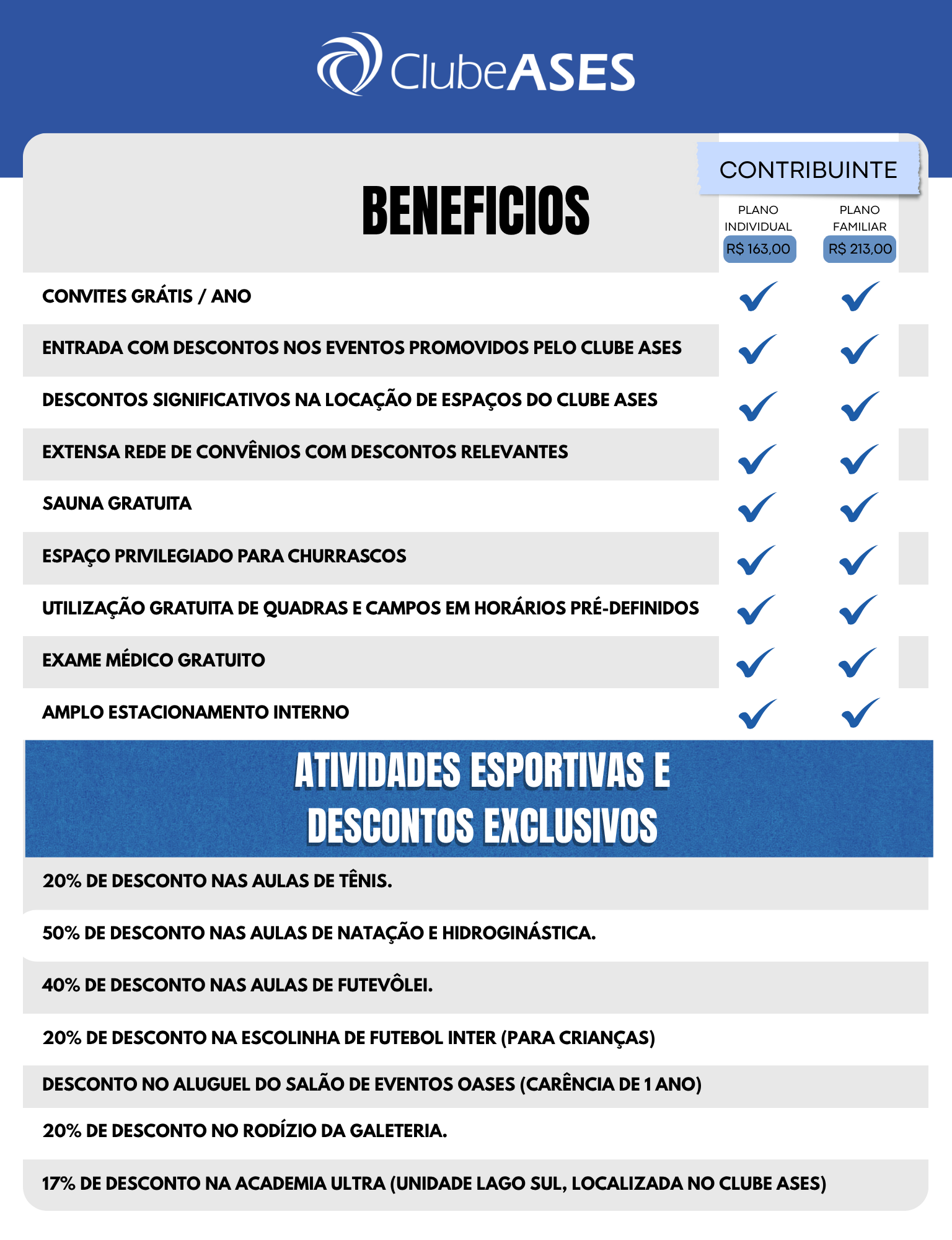 Associe-se, pois, as vagas são limitadas para novos Sócios Usuários e aproveite ao máximo todos os benefícios! Torne-se um associado do Clube Ases.